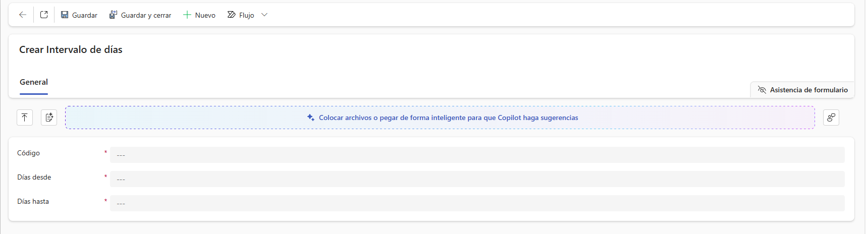 Código: Identificativo del intervalo de días. Ejemplo:en una fábrica de piensos que maneja soja, maíz y trigo, podrías crear: INT-SOJ-01 → Primer intervalo para soja en grano.