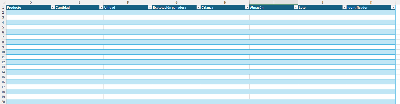 Este archivo servirá como plantilla para la importación.