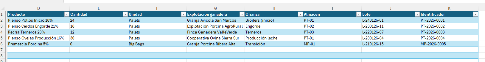 Es importante recordar que cada elemento debe exportarse e importarse desde su punto de menú específico, ya que no es posible realizar la carga desde ubicaciones distintas a las correspondientes. Para evitar incoherencias o errores durante el proceso, resulta imprescindible que todos los elementos relacionados estén previamente creados en el sistema. Estos pueden variar según el tipo de información a importar e incluyen productos, lotes, explotaciones ganaderas, almacenes, cuentas, conceptos adicionales y otros elementos dependientes.