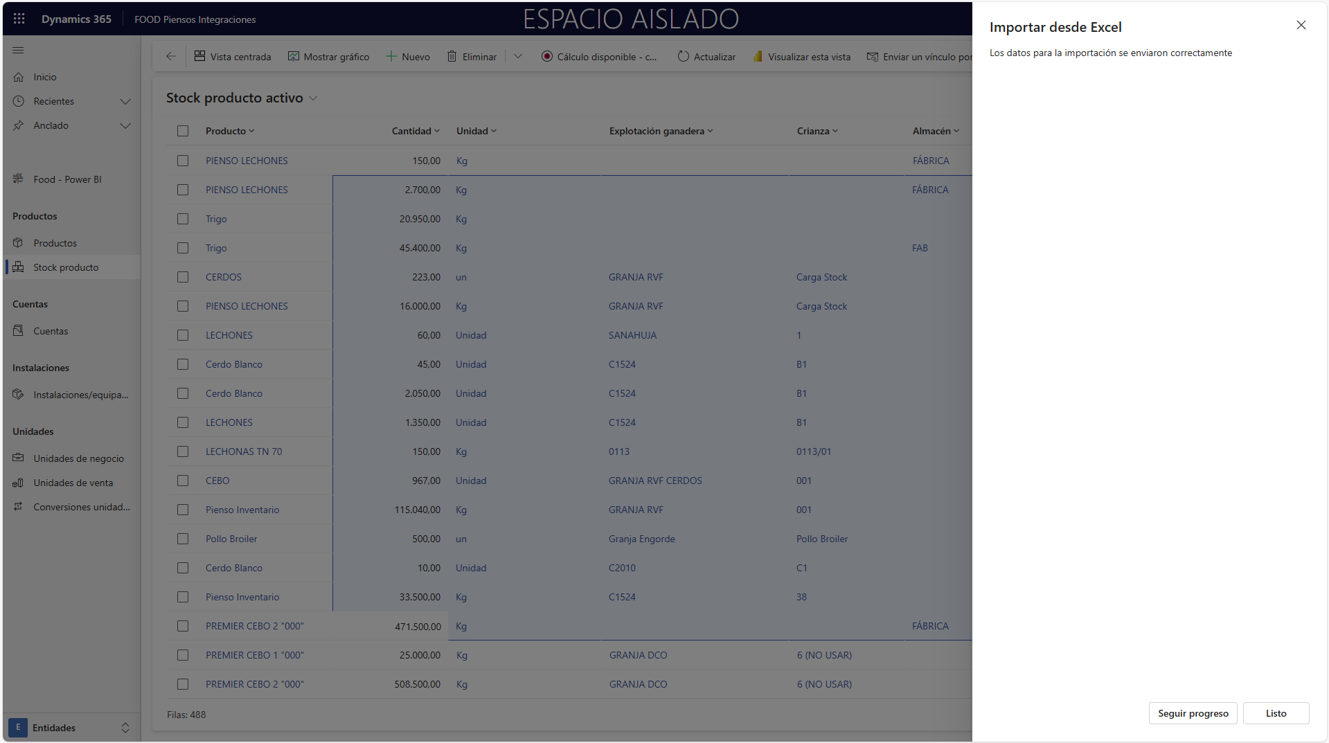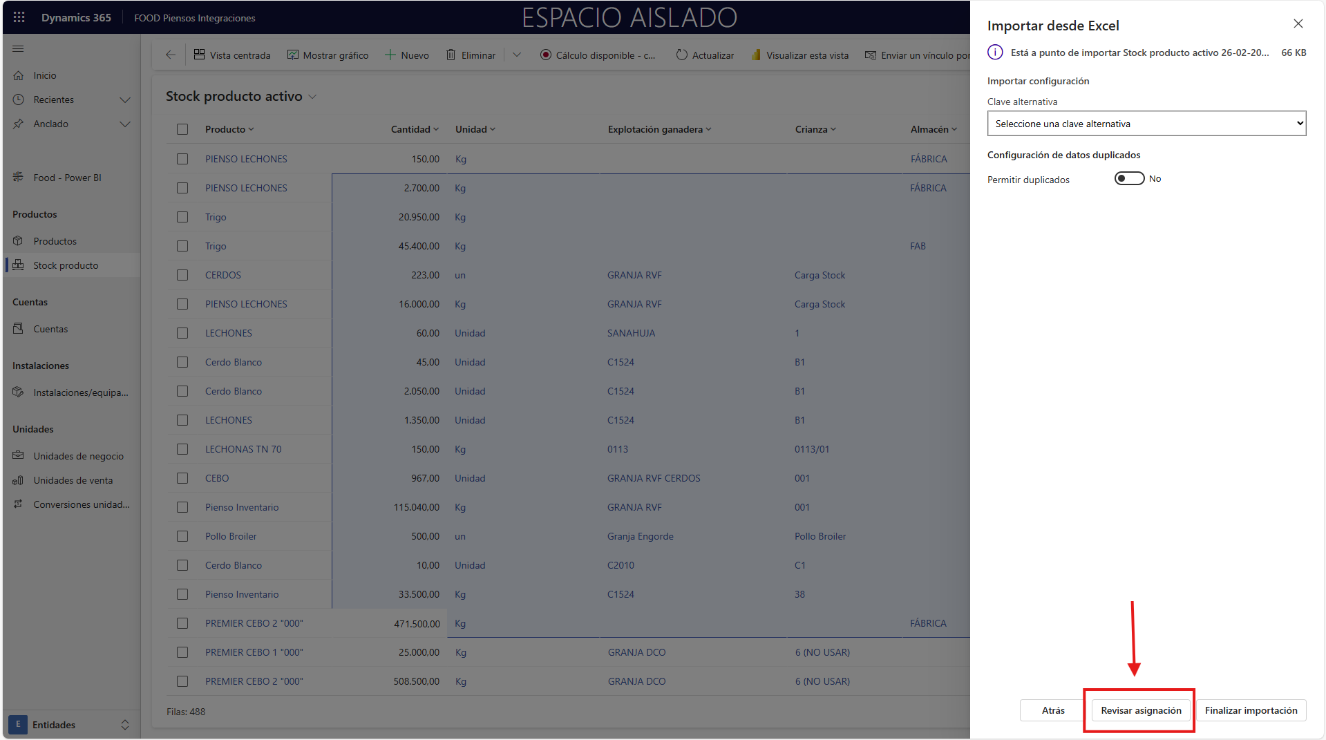 Debería comprobar que los Productos, Almacenes, Explotaciones ganaderas, Crianzas, Unidades de Venta y Lotes que se quieren cargar existen en la aplicación.