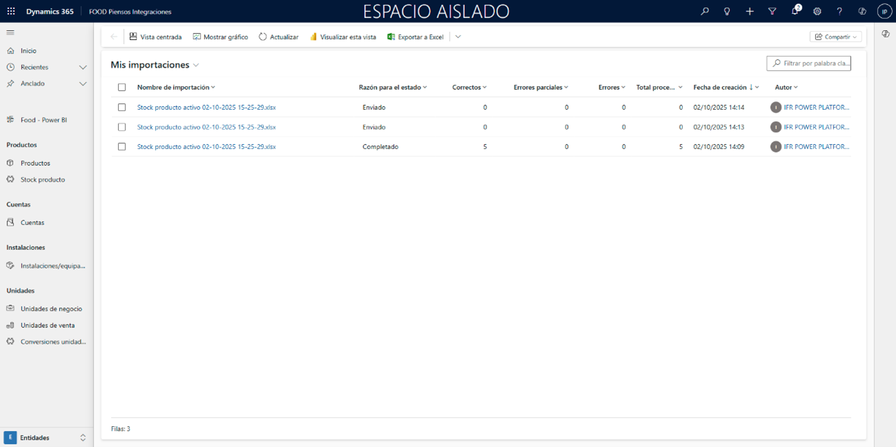 Antes de realizar una importación, es imprescindible que se hayan cargado previamente todos los elementos relacionados. Estos pueden variar según el tipo de información a importar, e incluyen desde productos, lotes, explotaciones ganaderas y almacenes, hasta cuentas, conceptos adicionales u otros elementos vinculados.