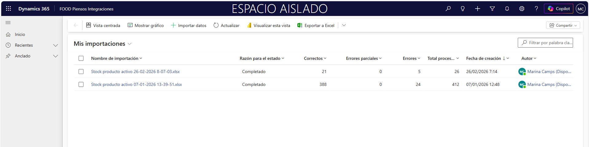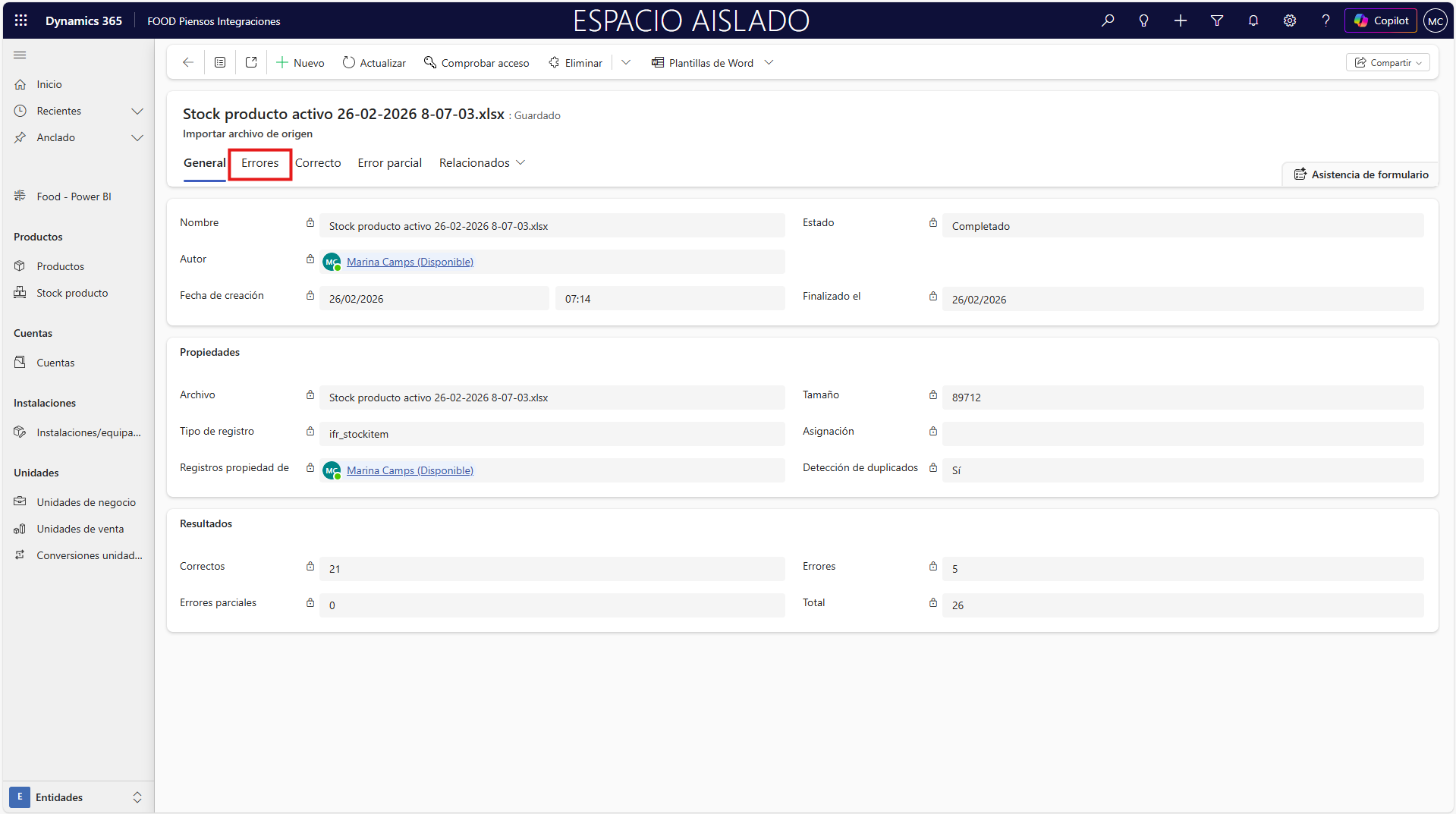 Una vez finalizada la carga, se mostrará el número de líneas que no se han importado correctamente o con errores. Acceda a la importación realizada para observar los detalles.