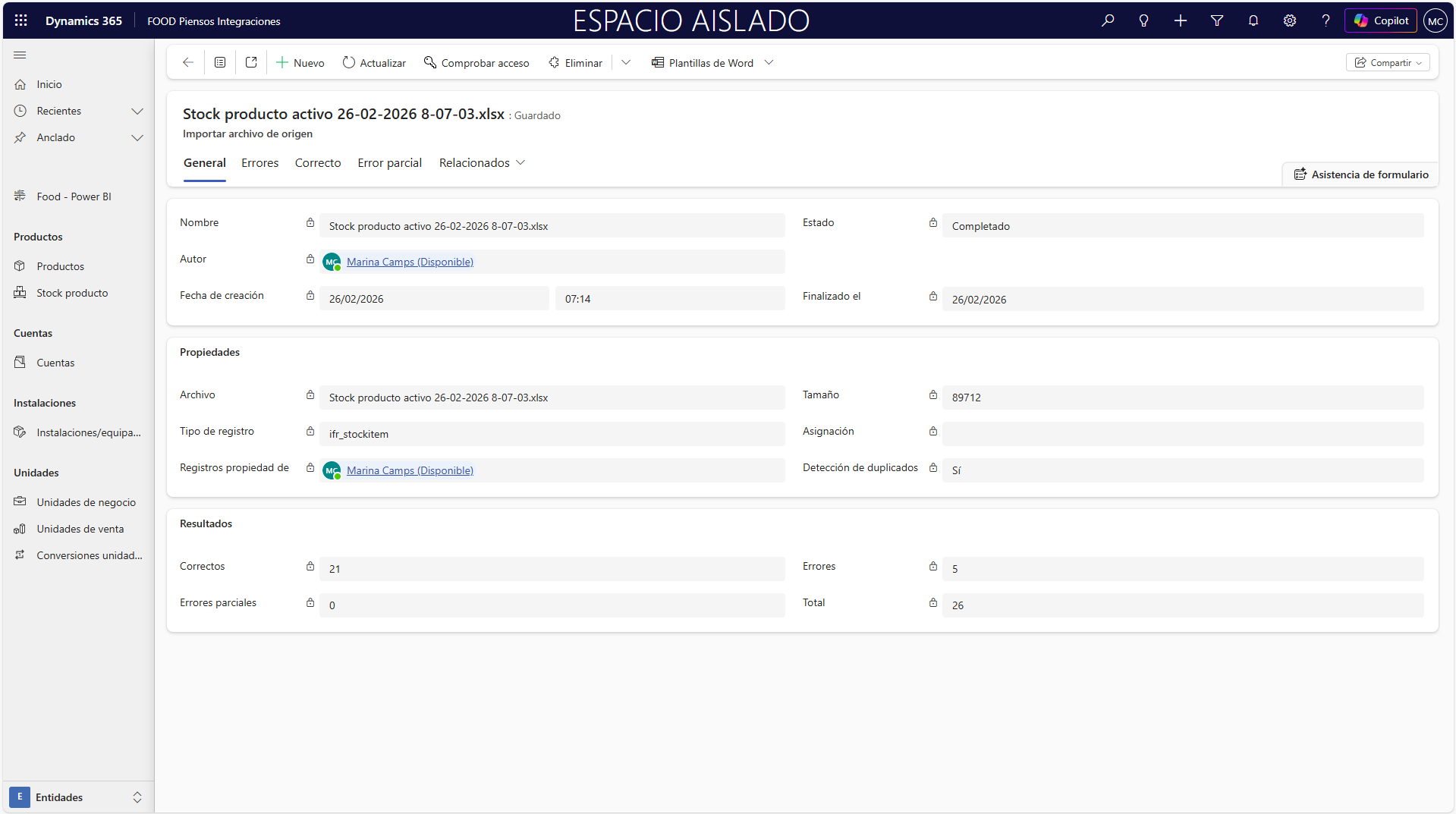 Como se ha mencionado anteriormente, se recomienda crear una plantilla desde el propio FOOD para introducir los datos y realizar la carga con el mínimo riesgo posible.