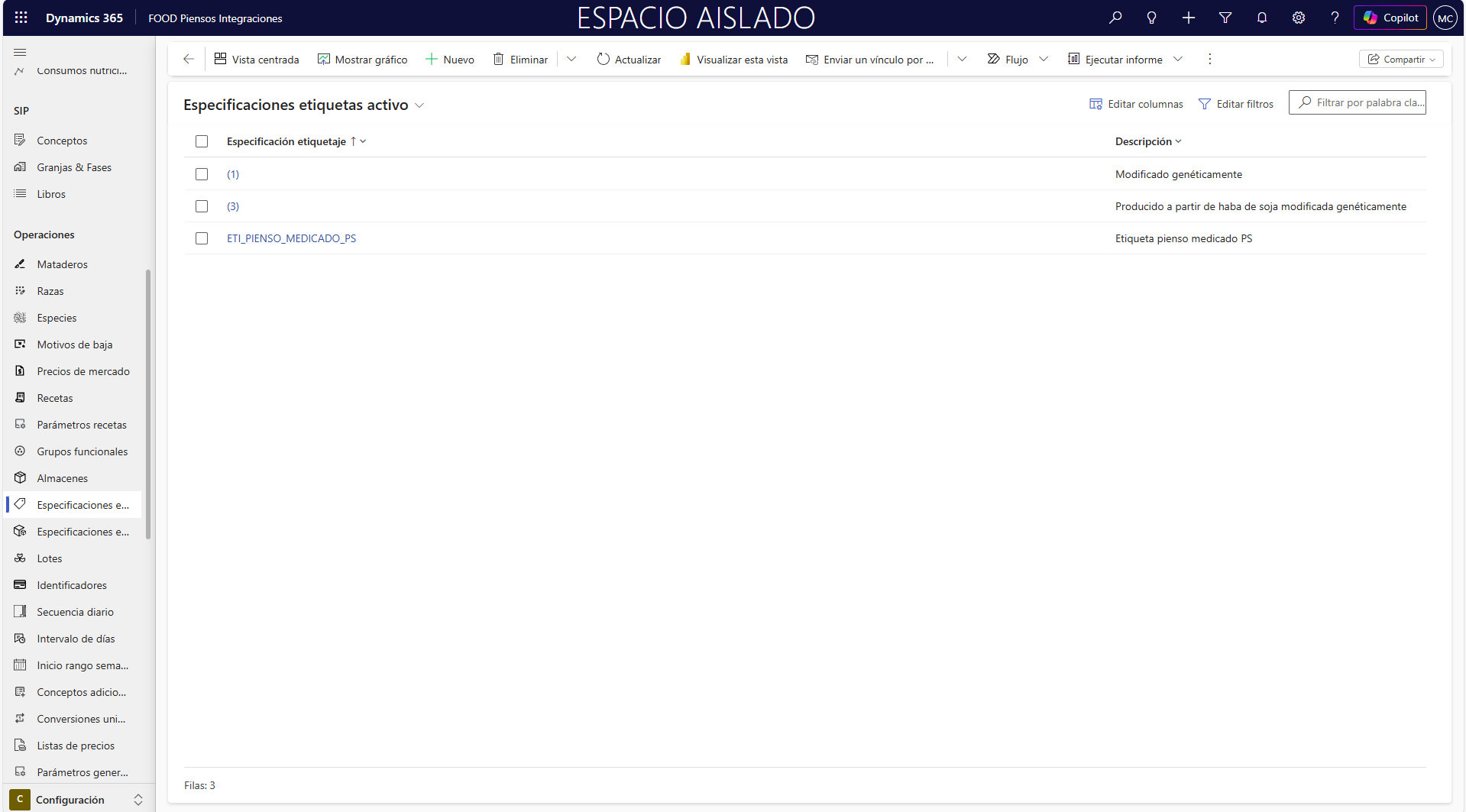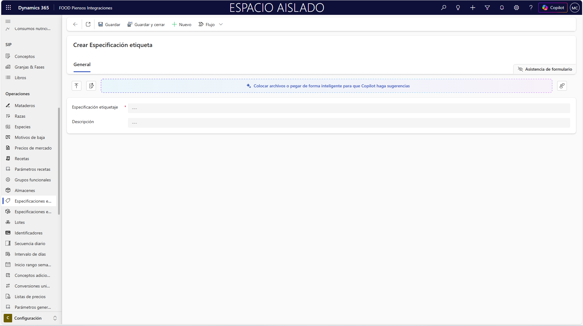 El primer paso consiste en definir la información adicional que se desea mostrar. Para ello, acceda al punto de menú pertinente siguiendo la ruta Configuración > Operaciones > Especificaciones etiquetas.