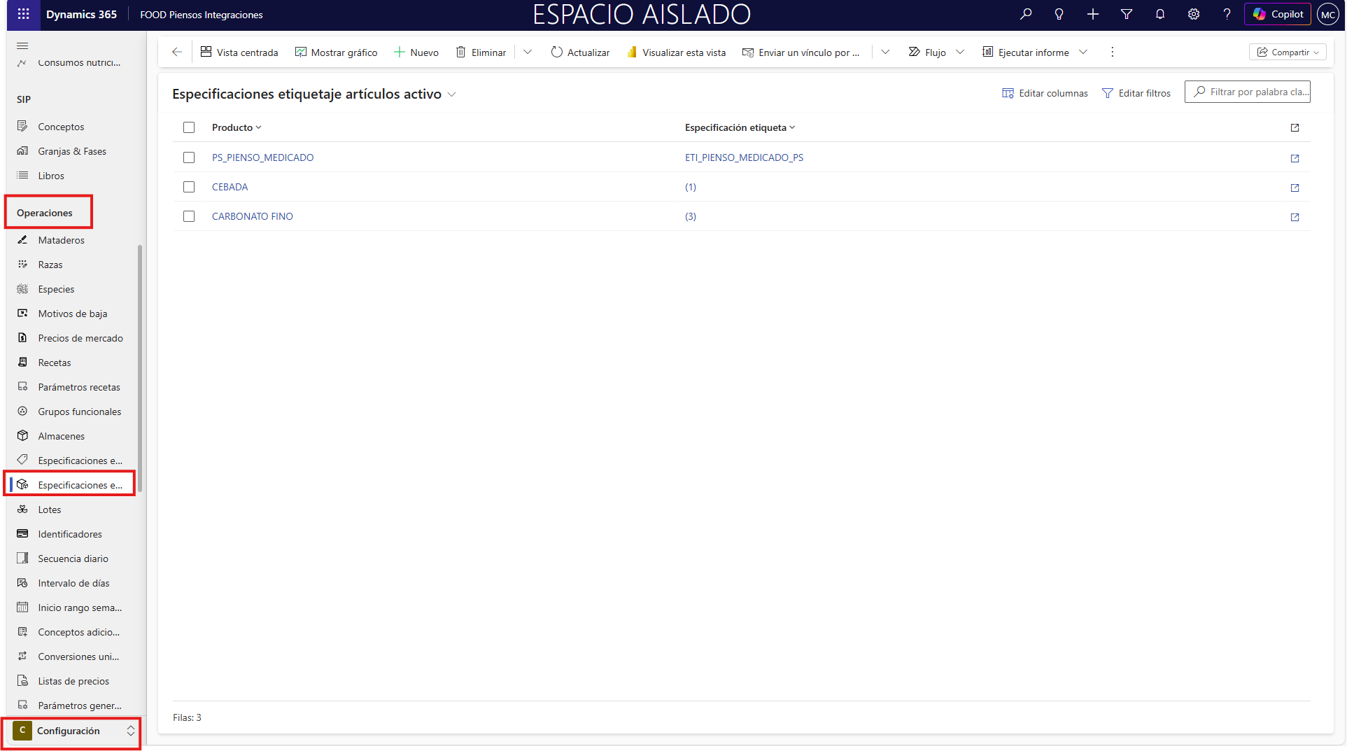 Estos se encontrarán en el área de Configuración (2), accesible desde el Menú principal (1). Los elementos se encontrarán en la sección Operaciones.