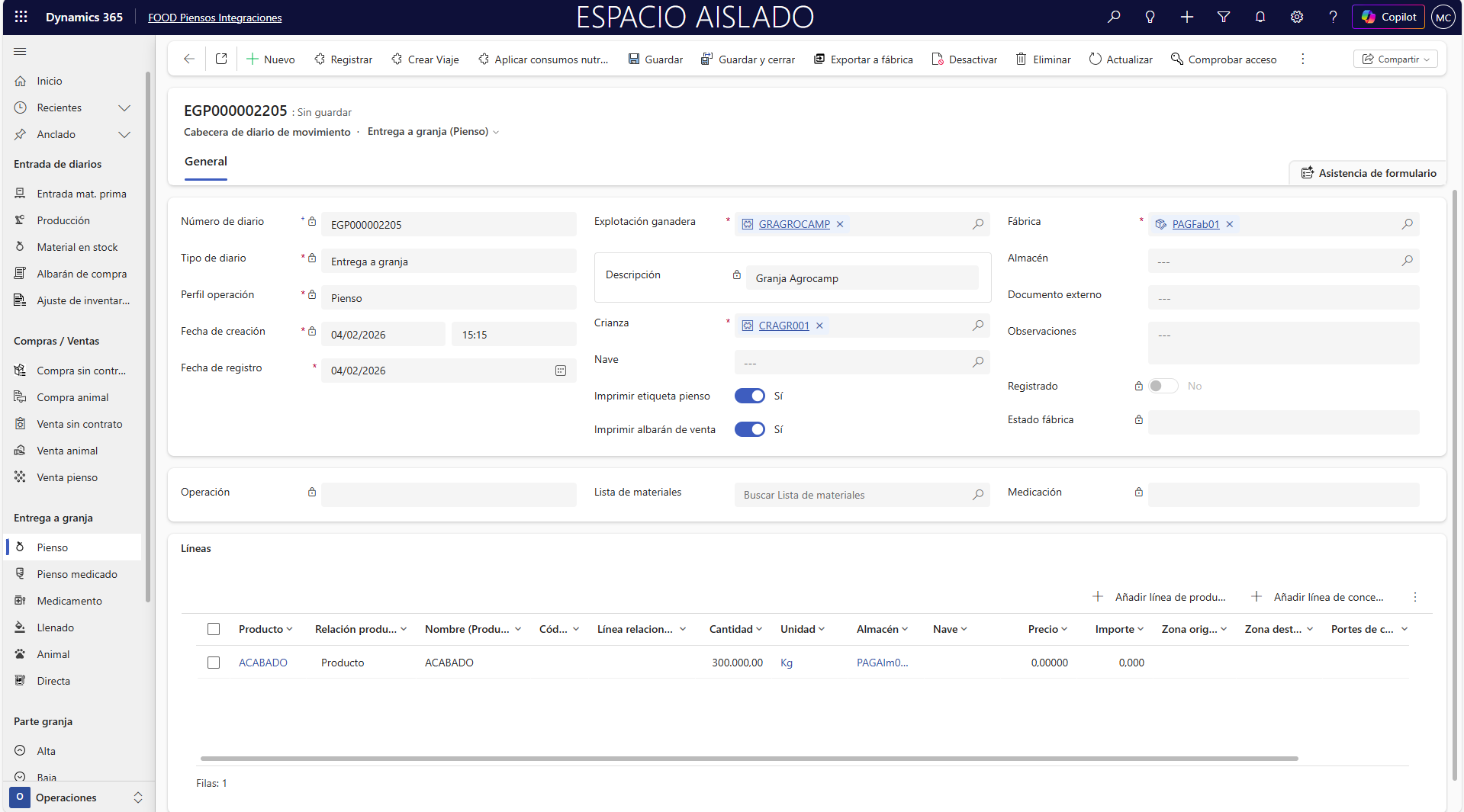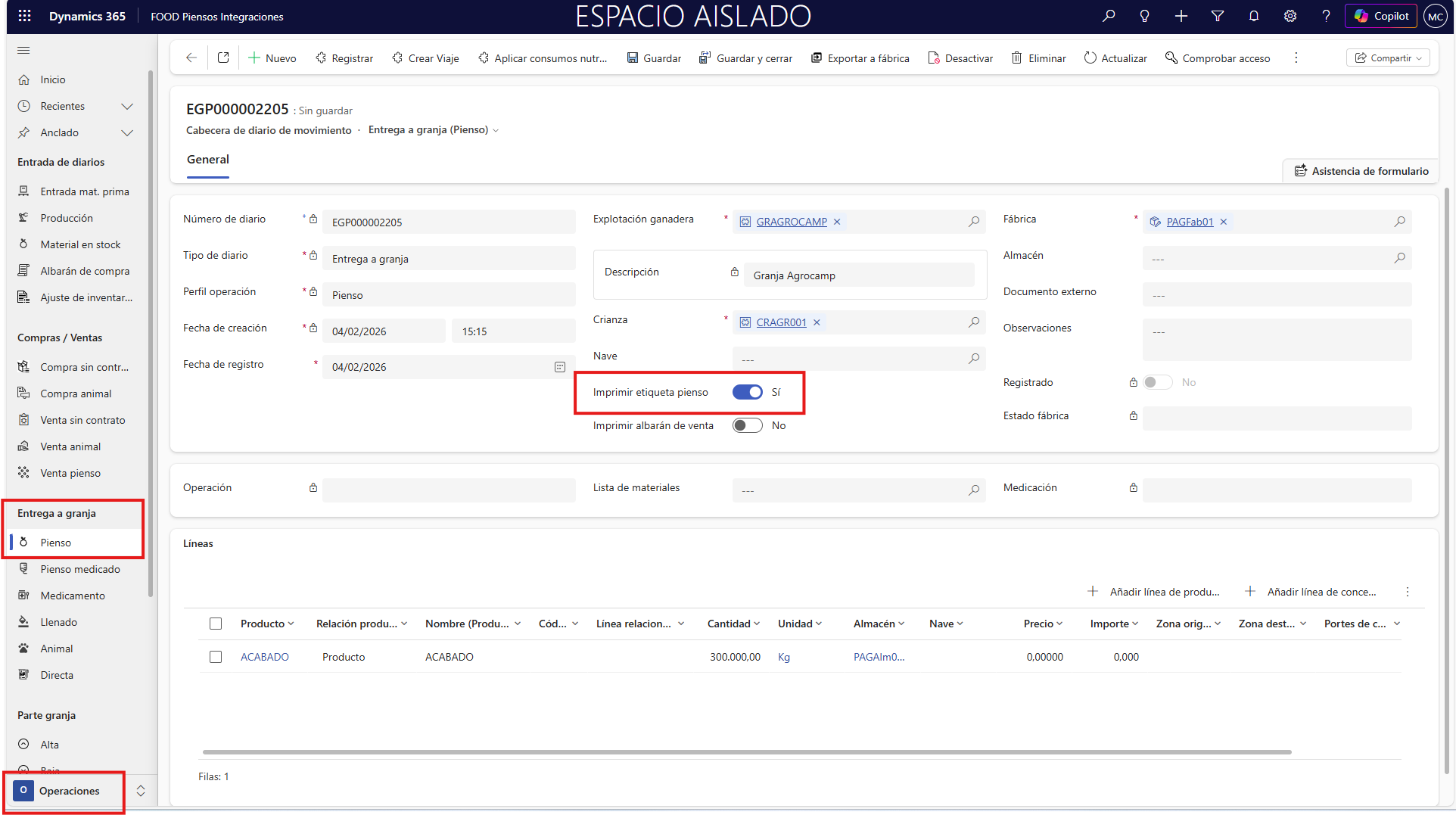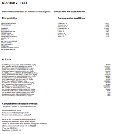 Un primer ejemplo de documentos a generar automáticamente a partir de ciertas operaciones, son las etiquetas de pienso. Estas etiquetas se habilitan, por ejemplo, en los diarios de entrega de pienso y pienso medicado, y tienen como objetivo detallar la información nutricional del producto junto con sus ingredientes.