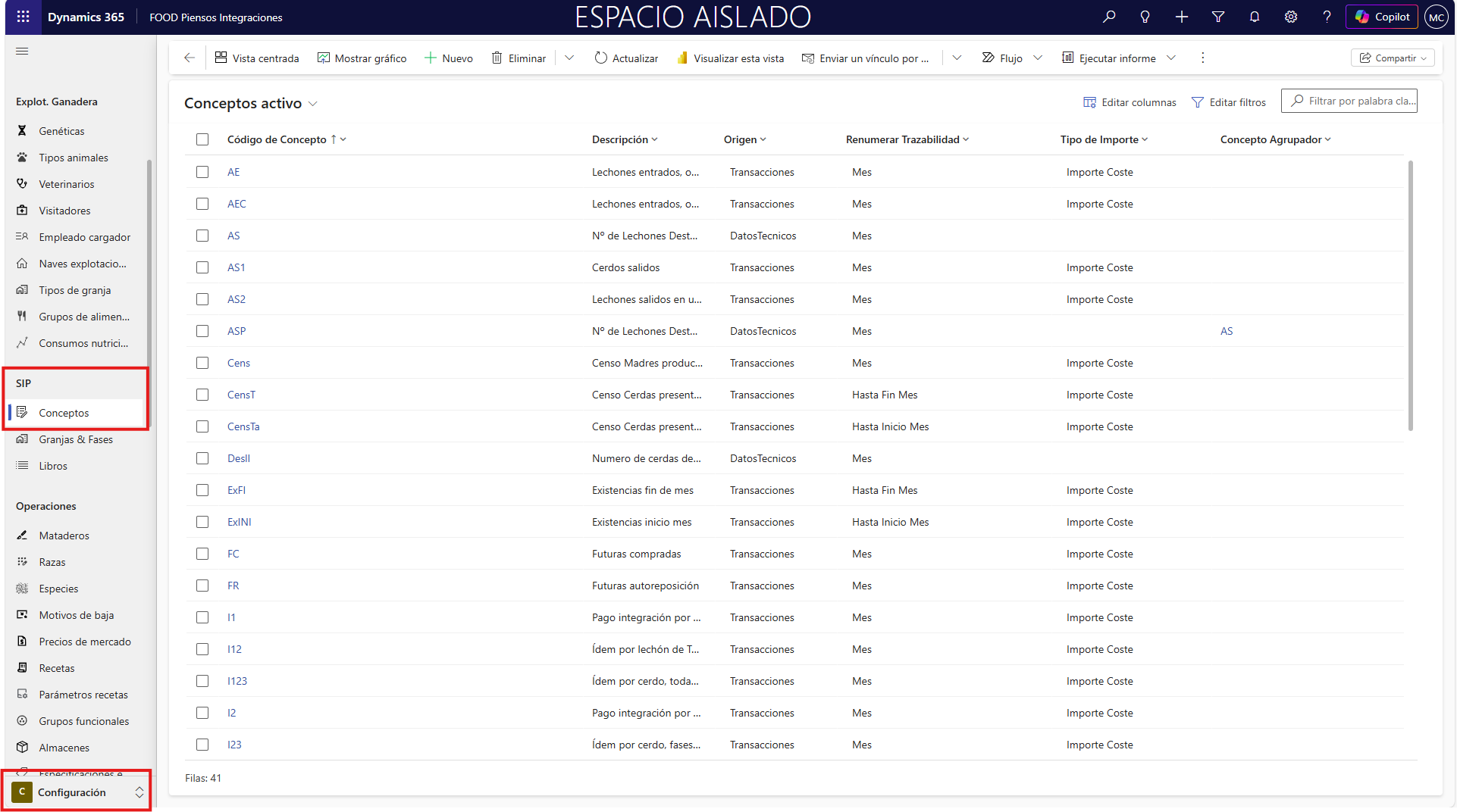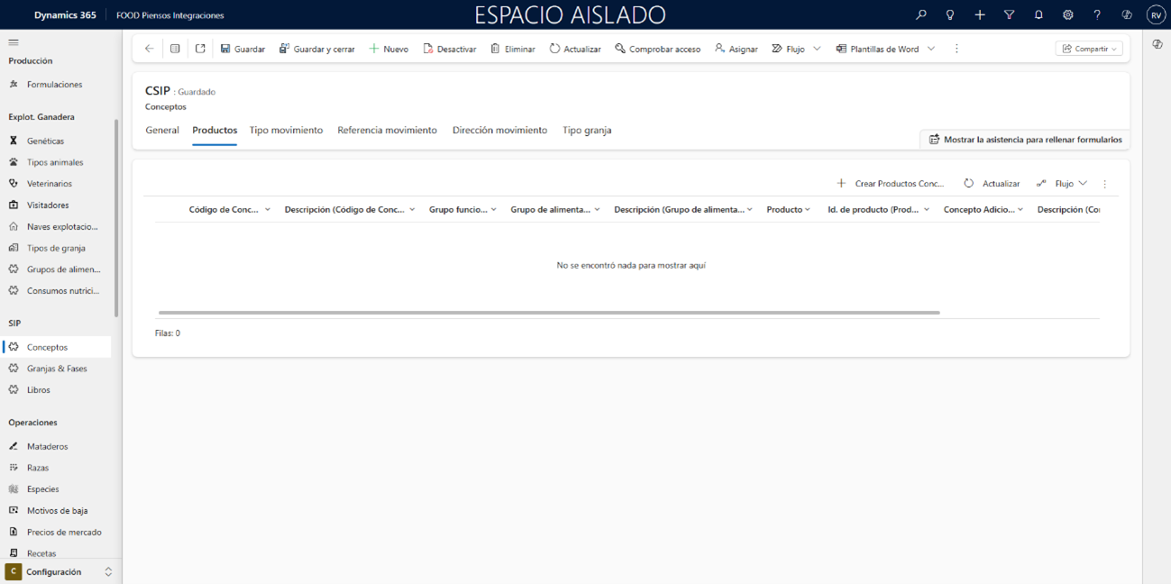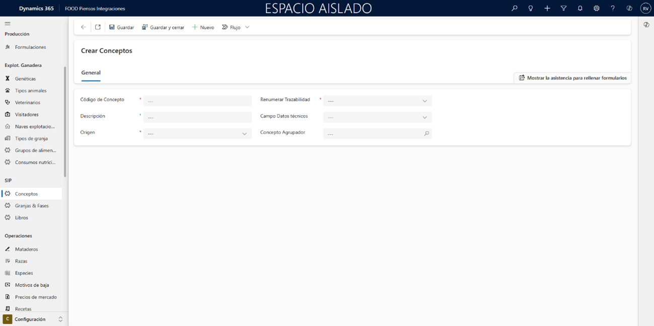 El primer elemento que debe configurarse dentro del SIP son los Conceptos. Estos definen la lógica y el comportamiento que tendrá el sistema al registrar operaciones en los distintos diarios.