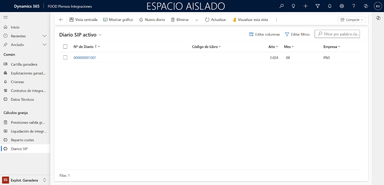 Por su parte, los diarios SIP representan los registros individuales de cada operación concreta que se realiza dentro del sistema. Cada diario documenta movimientos, actividades o eventos productivos con un nivel de detalle suficiente para asegurar una trazabilidad completa de cada acción. De esta forma, los diarios permiten un control operacional coherente y riguroso, garantizando que todas las actividades queden registradas correctamente dentro del libro correspondiente.