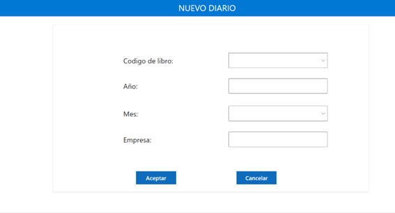 En caso de existir un Diario con una combinación idéntica de Código de libro, Año y Mes, el sistema no permitirá generarlo hasta borrar el existente.