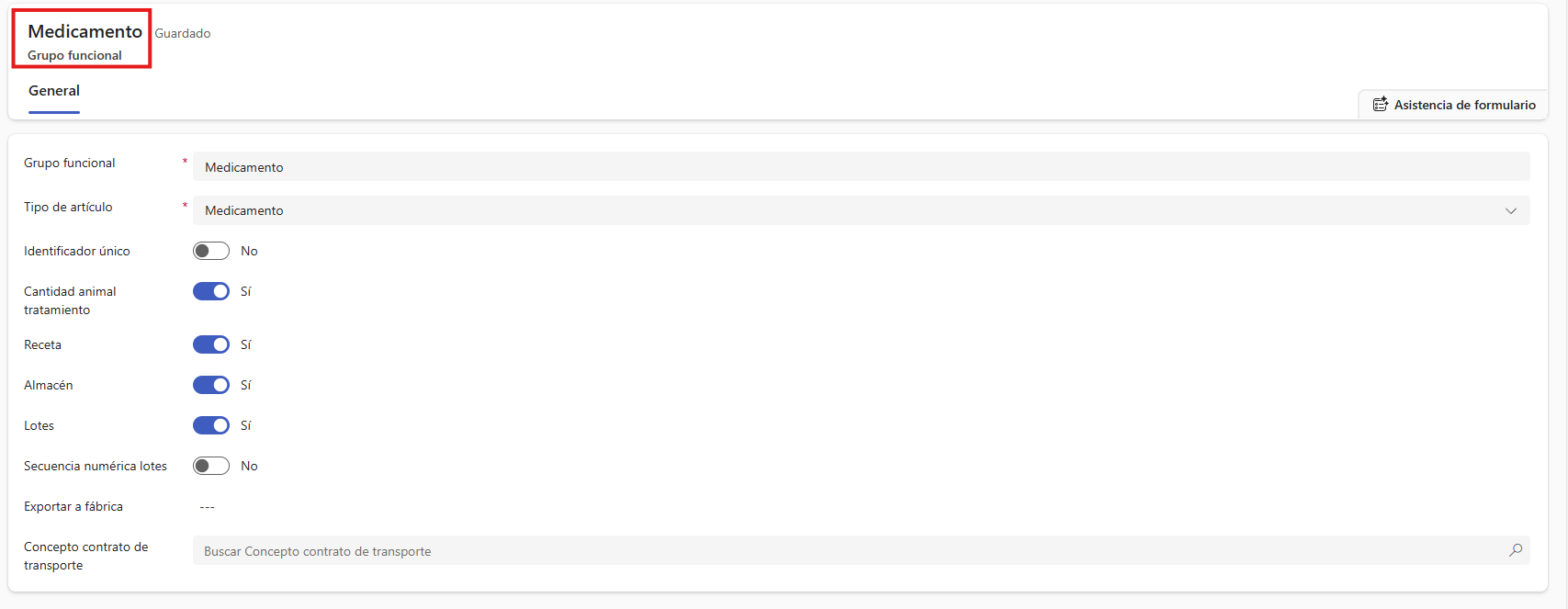 - Un producto válido cuyo Grupo funcional tenga configurado Tipo de artículo = Medicamento.