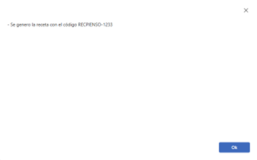 El identificativo de la receta se informará por pantalla mediante un mensaje: