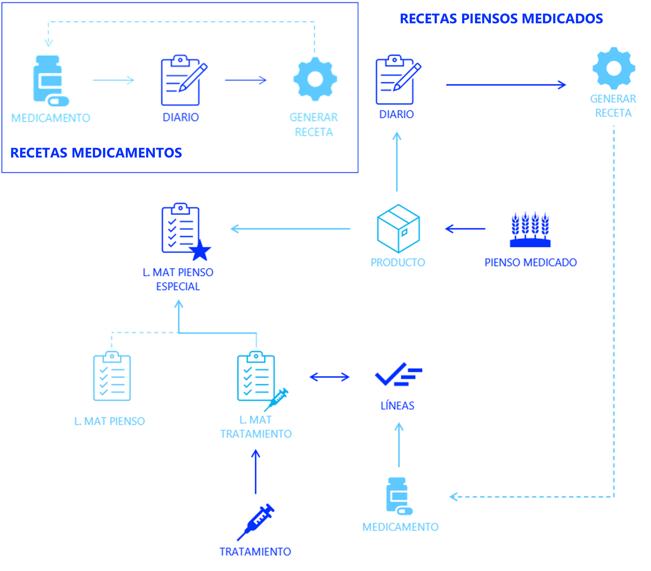 - Producto: Medicamento recetado, relacionado al pienso medicado.
