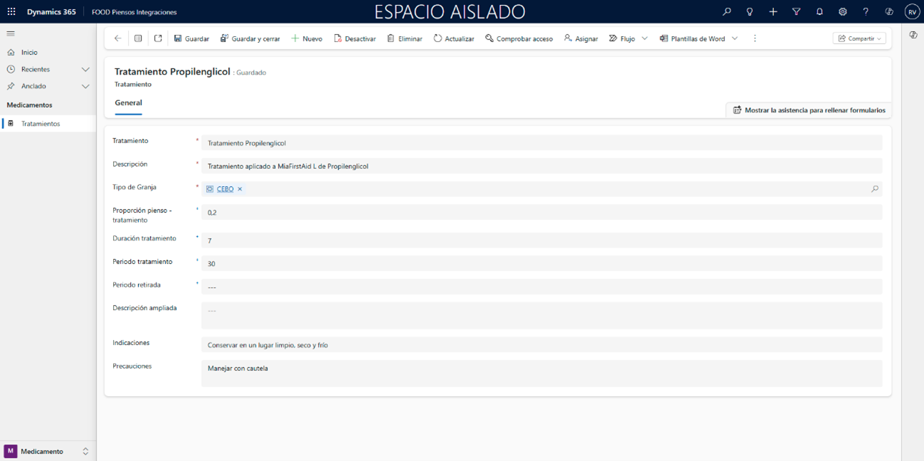 Una vez realizado, desplácese de área siguiendo la ruta Medicamento > Medicamentos > Tratamientos.