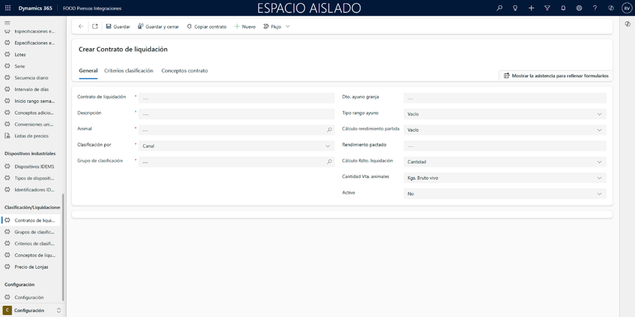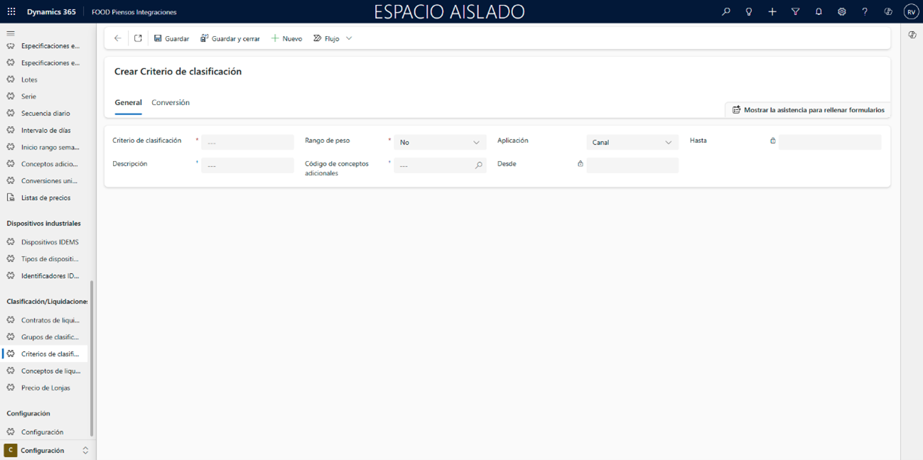 Ruta: Configuración > Clasificación/Liquidaciones > Criterios de clasificación