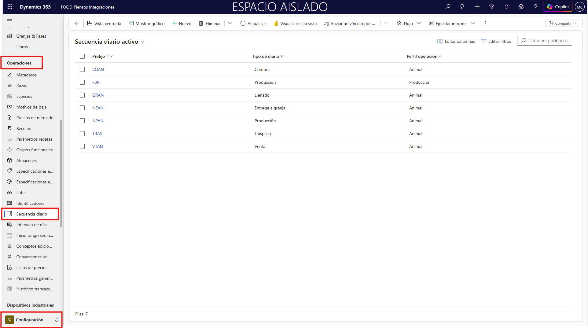 Ruta: Configuración > Operaciones > Inicio rango semana