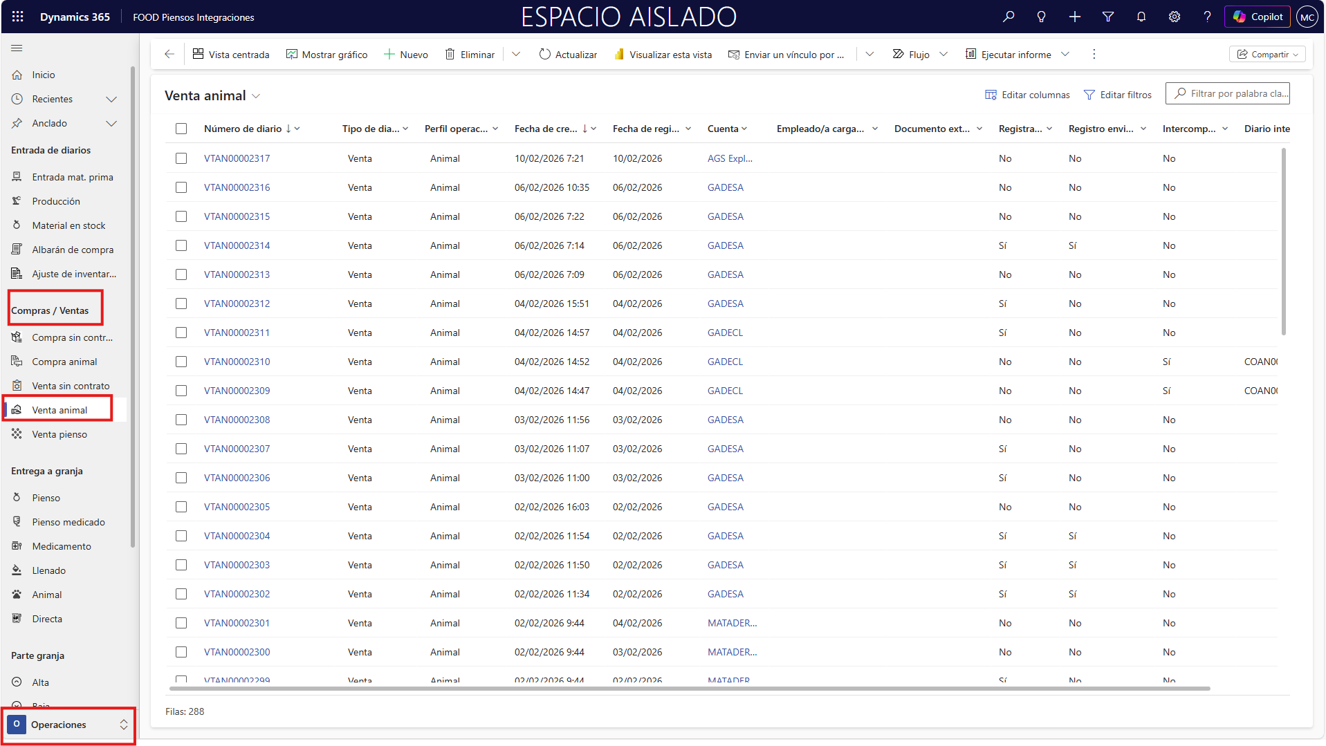 Esta ruta describe, de principio a fin, el proceso para gestionar las ventas de animales y los diarios asociados a dichas operaciones. Su objetivo es asegurar que el sistema pueda clasificar, valorar y liquidar correctamente cada venta, manteniendo la trazabilidad y la coherencia de la información en todo el flujo.