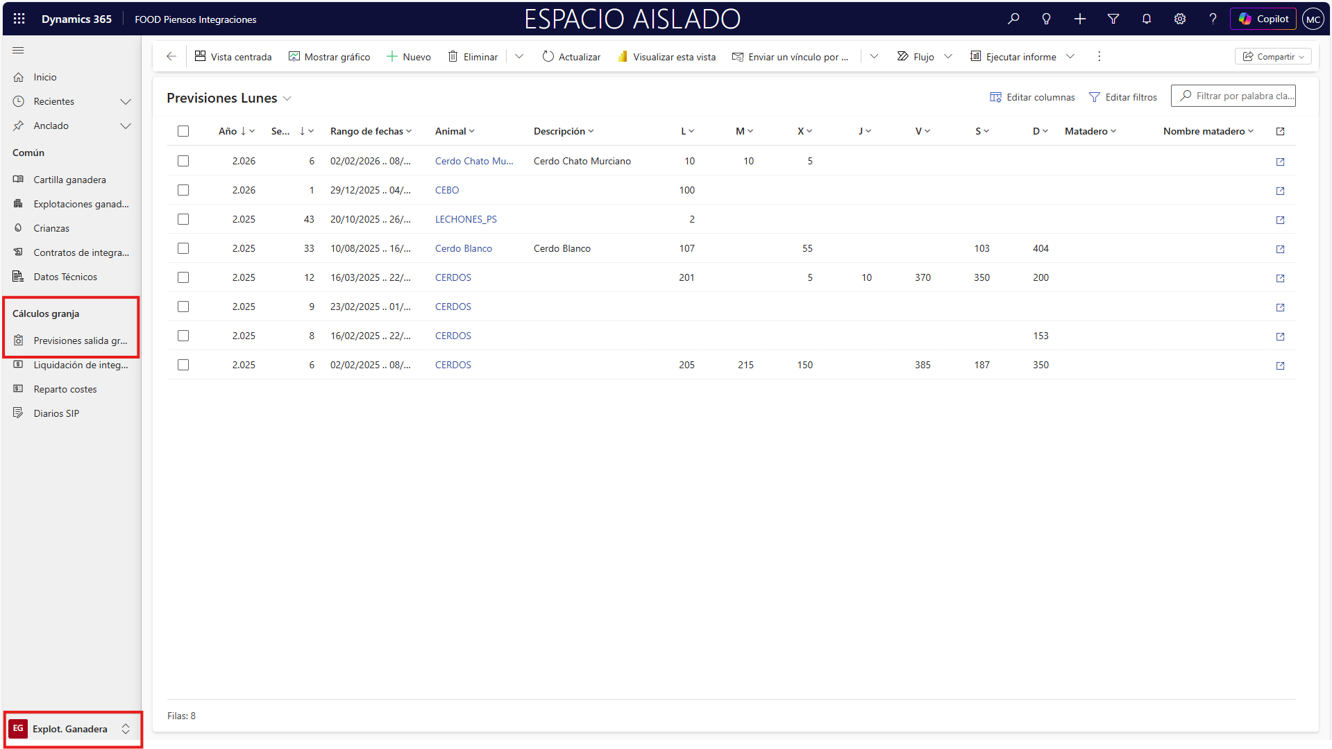 Ruta: Explot. Ganadera > Previsiones salida granja