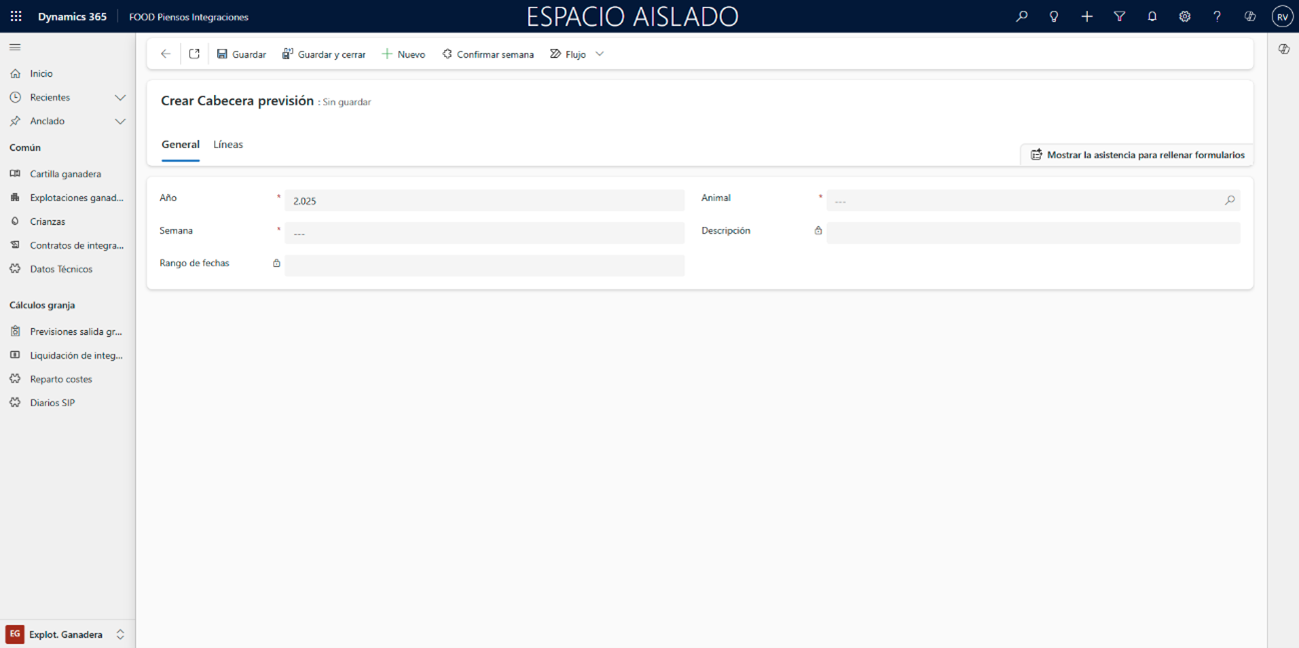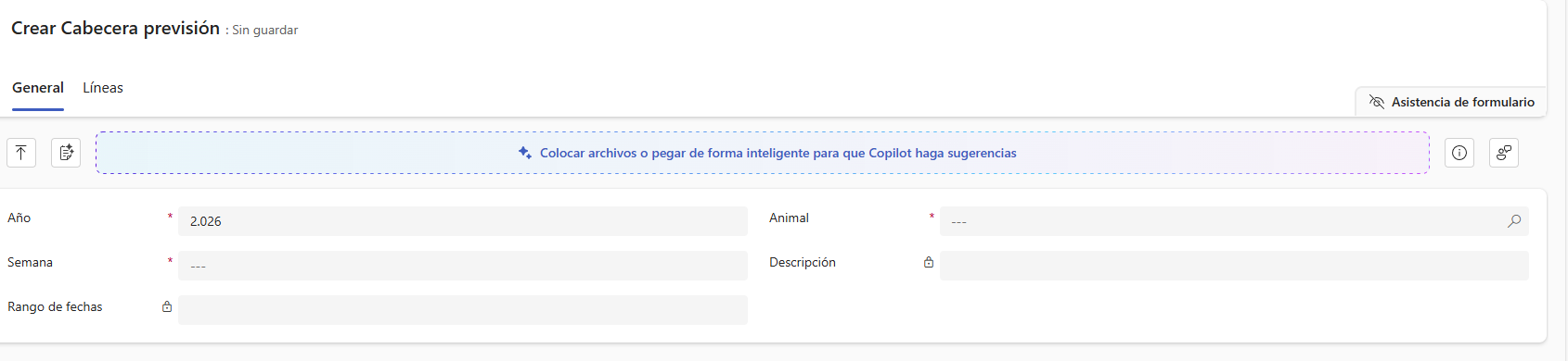 Para crear una nueva previsión, pulse +Nuevo. Se abrirá la cabecera de previsión: