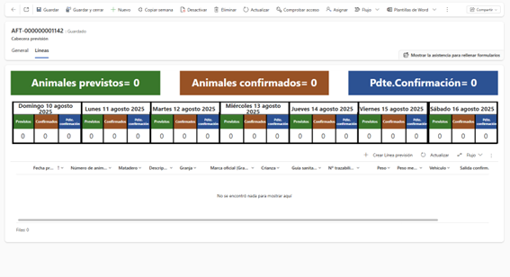 Guarde con Guardar para habilitar la pestaña Líneas y acceder a la planificación diaria.