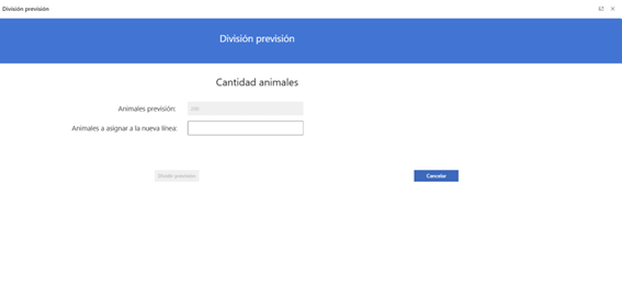 Confirme con Dividir previsión. Se duplicará la información, ajustando únicamente el número de animales.