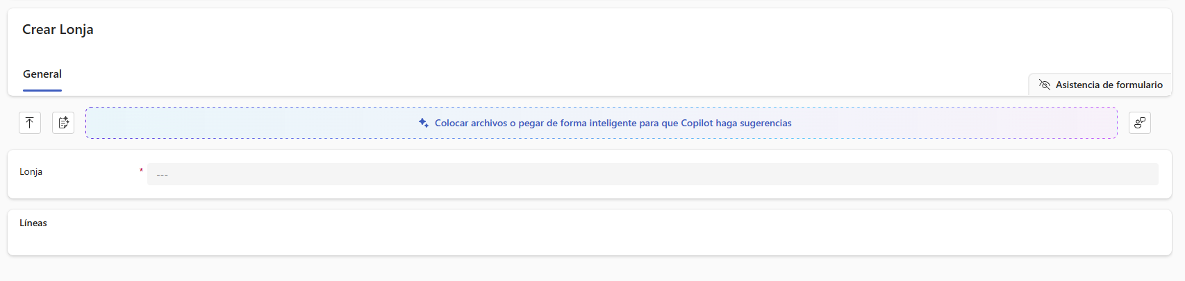 Para crear una nueva lonja, pulse +Nuevo. Aparece la ventana de creación: