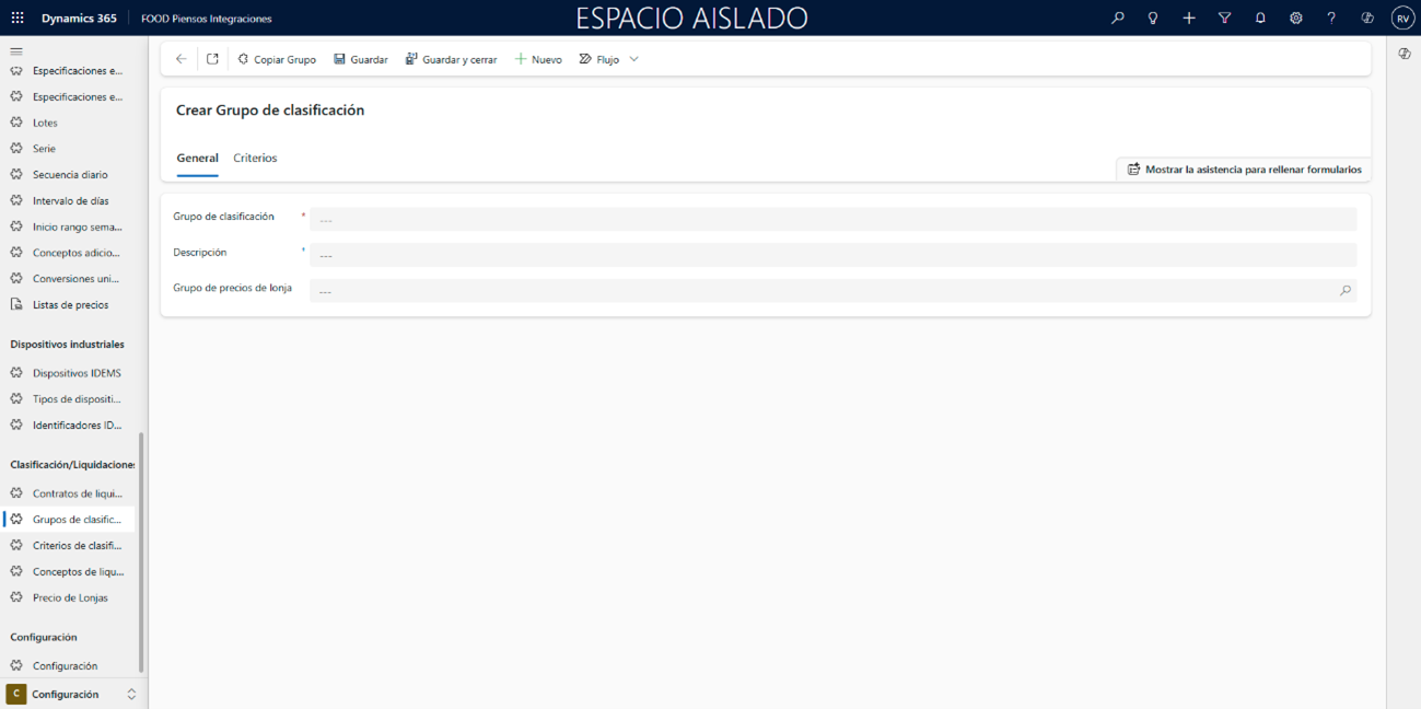 Ruta: Configuración > Clasificación/Liquidaciones > Grupos de clasificación