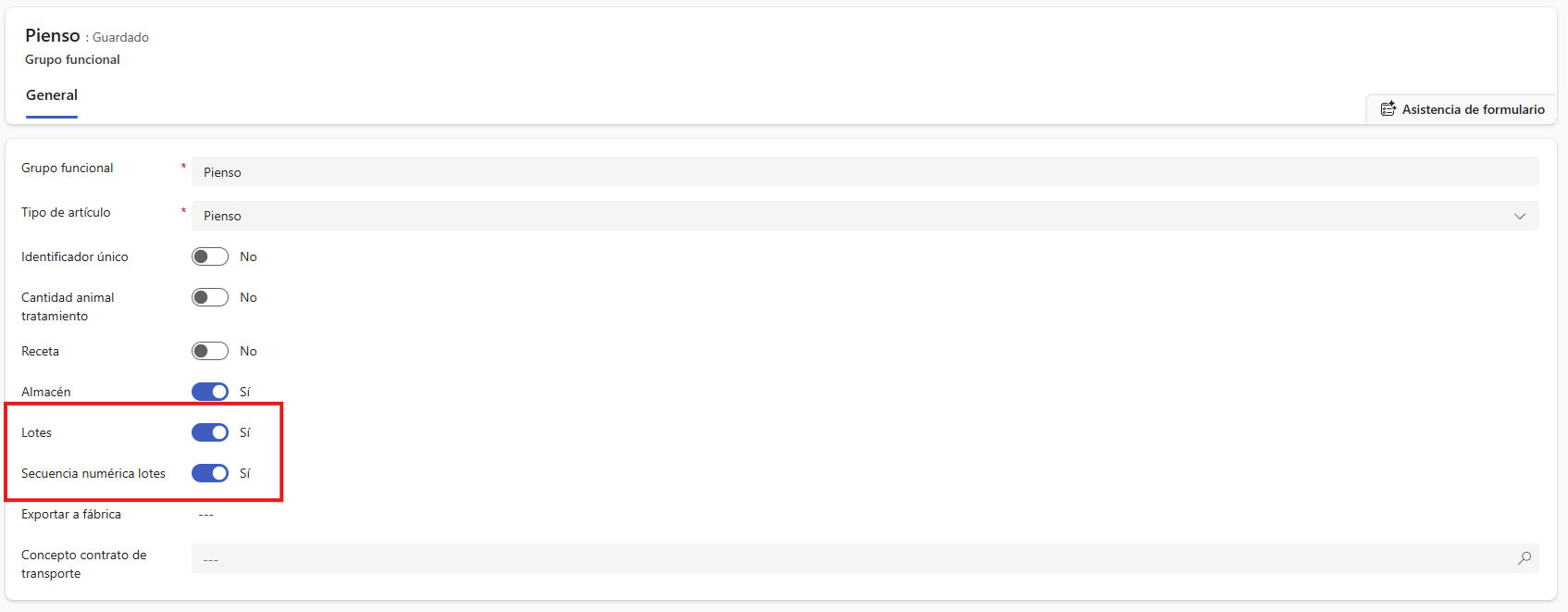 Para lotes/series, consulte DLotes FOOD Piensos Integraciones.
