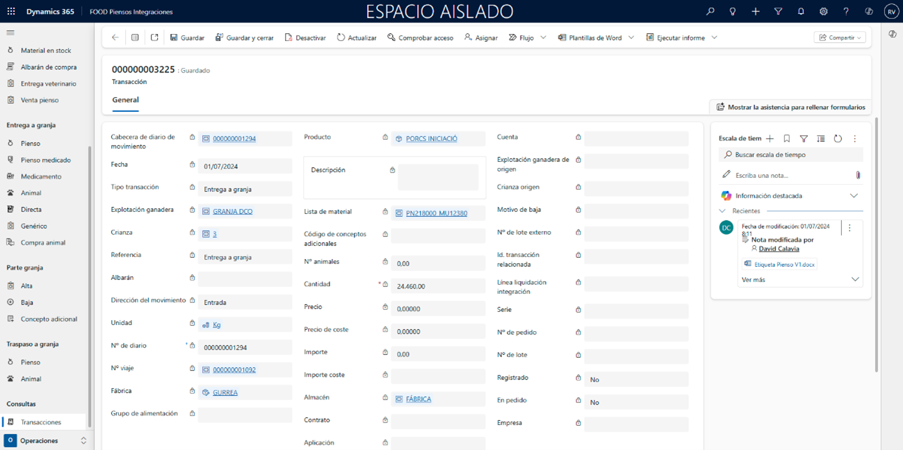 • Tipo transacción: Coincide con el Perfil operación del diario (Alta, Baja, Pienso, Animal, etc.)