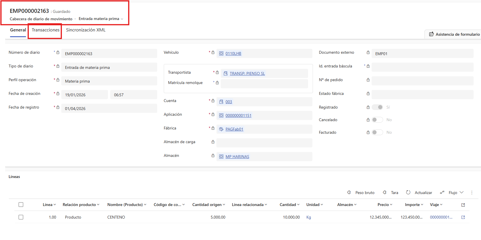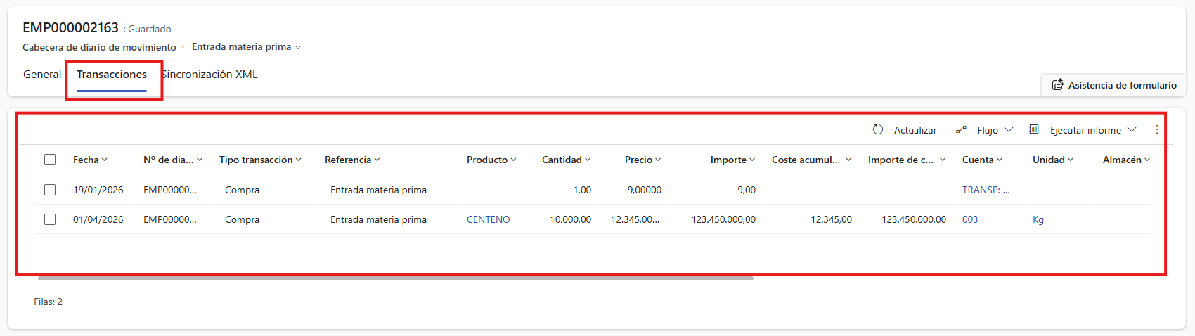 Dentro de la aplicación, cada vez que se ejecuta un proceso o se registra un diario, el sistema genera automáticamente una Transacción.