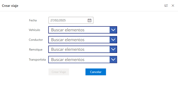 - Transportista: Se informa el transportista seleccionado en la creación del viaje.